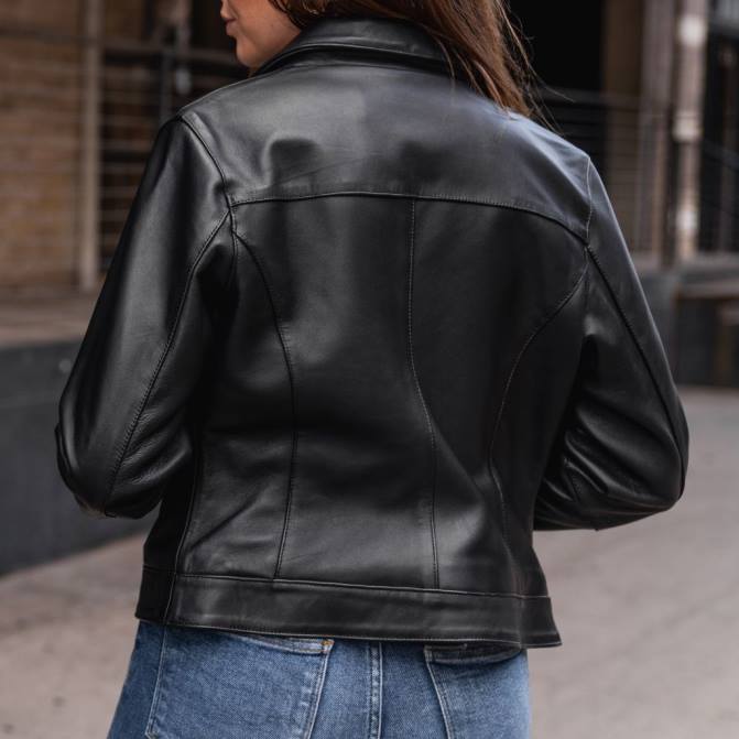 die klassische Lederjacke mit spitzem Kragen, die nie aus der Mode kommt, aus den hochwertigsten Materialien hergestellt und zu den niedrigsten Preisaufschlägen der Branche verkauft wird. Handgefertigt aus wunderschönem Lammnappaleder, einem langlebigen Metallreißverschluss und weichem Innenfutter aus Polyester. Jedes Detail der Edition-Jacke wurde so gestaltet, dass sie vom ersten Tag an gut aussieht und sich gut anfühlt – und mit zunehmendem Alter immer besser wird.
